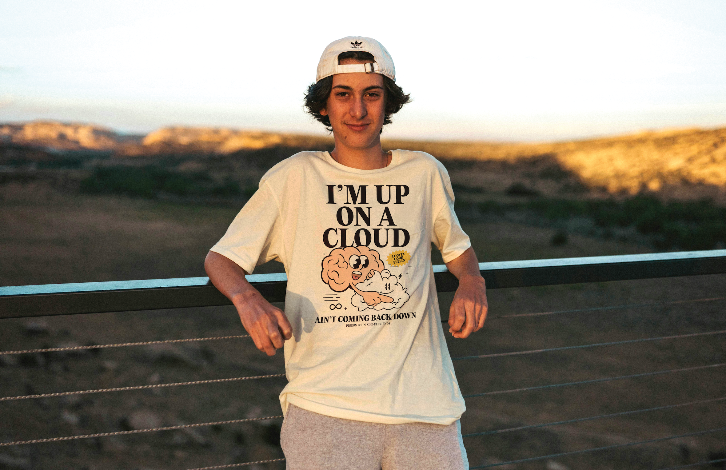 Inspired by and in collaboration with Pigeon John his song "Gotta Good Feelin'" comes I'm Up on A Cloud. 100% of all profits are donated directly to Love Over Labels Advocacy a 501(c)3 that benefits neurodivergent families in need.